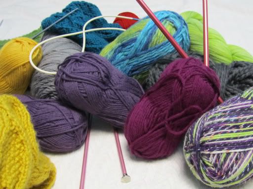 Ah the dreaded first post.  How does one introduce such a blog?  By displaying yarn and needles of course!  And what a pretty wish-wash of knitting supplies, too.